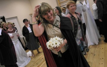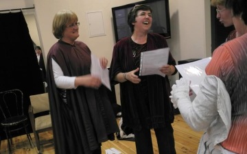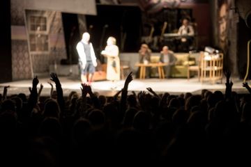 Co bylo na programu? Úvodní slovo přednesla režisérka a umělecká vedoucí Divadla v Dlouhé, Hana Burešové a dramaturg a umělecký vedoucí Divadla v Dlouhé, Štěpán Otčenášek v divadelním klubu. Následovala prohlídka divadla s herci Míšou Doležalovou a Čeňkem Koliášem. Lektorský program na téma Shakespearovské postavy s Lindou Šilarovou se konal ve zkušebně divadla. Pracovnice KMD vedle organizace akce zajistily svatebně laděné občerstvení. Společně jsme si užili uvedení reprízy inscenace Mnoho povyku pro nic. Následovala krátká diskuze s tvůrci inscenace, s režisérkou Hanou Burešovou, herci Helenou Dvořákovou a Markem Němcem. Do diskuse se zapojil také autor hudby Milan Potoček.