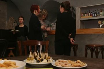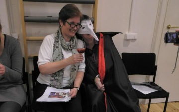 Co bylo na programu? Úvodní slovo přednesli režisérka a umělecká vedoucí Divadla v Dlouhé, Hana Burešové a dramaturg a umělecký vedoucí Divadla v Dlouhé, Štěpán Otčenášek v divadelním klubu. Následovala prohlídka divadla s herci Míšou Doležalovou a Martinem Matejkou. Lektorský program byl inspirovaný Commedií dell'arte ze zabýval tematikou „Jak pracovat se studenty po návštěvě divadelního představení“ a vedla jej lektorka Linda Šilarová. Pracovnice KMD vedle organizace akce zajistily občerstvení v italském stylu. Společně jsme si užili uvedení reprízy inscenace Lhář. Následovala krátká diskuze s tvůrci inscenace, s režisérkou Hanou Burešovou, scénografem Davidem Markem, hercem Janem Vondráčkem, inspicientkou Halinou Ničovou za obchodní oddělení se zapojila Aneta Švecová.